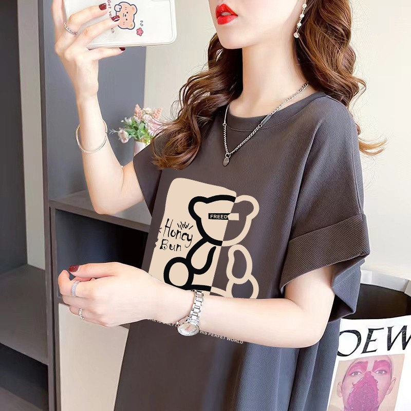 4分鐘前慵懒风短袖t恤裙女夏季休闲宽松过膝长裙纯棉长款连衣裙大码女装 - 灰色套裝